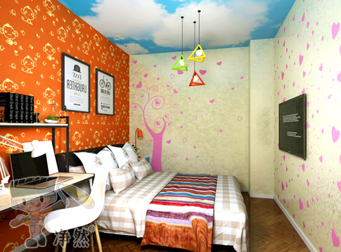 米黄色的基调,简约并不简单,大大的儿童床、储物柜,一切都显得天然、环保,符合孩子安静的性格。